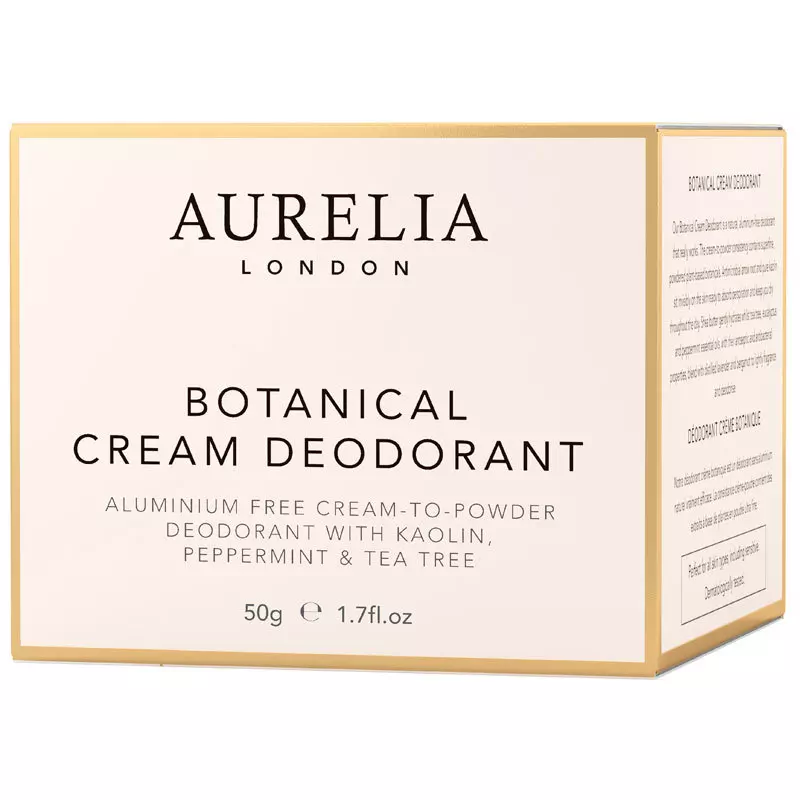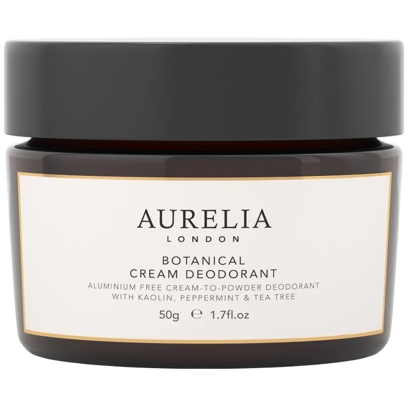 Aurelia Botanical Cream Deodorant er en fuldstændig fantastisk deodorant. Dette er en anderledes deodorant, da den fungerer som en creme-til-pudder deo. Det vil sige at man her får en deodorant i krukke, og når den påføres vil den forvandle sig til pudder. Det superfine pudder som blandt andet indeholder pilerod og kaolin, absorberer naturligt sved i løbef af dagen, og holder derved huden tør. Den er beriget med sheasmør, som fugter huden, mens indholdet af tea tree- eukalyptus- og pebermynteolie virker antiseptisk og antibakteriel, samtidig med at det bidrager til den friske duft. Aurelia Botanical Cream Deodorant fjerner dårlig lugt og efterlader dig med en frisk og ren følelse.