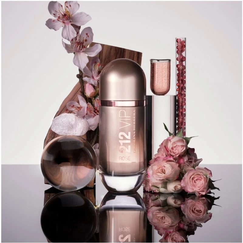 Carolina Herrera 212 VIP Rosé EDP er en eksklusiv duft udover det sædvanlige, der repræsenterer den elegante kvinde der stråler i en lang smuk kjole, og passer perfekt ind i enhver cocktail party. Dette skyldes at den er beriget med noter fra blandt andet dyr og luksuriøs champagne, samt forskellige frugter, der giver et friskt pift til dit sofistikerede ydre. Derudover indeholder den noter fra den fantastiske ferskenblomst, samt fra varmt rav, moskus og forskellige træsorter. Disse smyger sig om kroppen, og giver parfumen en dybde, der vækker sanserne til live, og signalerer at du er en selvsikker kvinde, der har styr på din fremtoning og ved hvad hun kan lide. En feminin og rig Eau de Parfum der går godt til ethvert socialt arrangement, og som viser din yndefulde og graciøse side til perfektion.