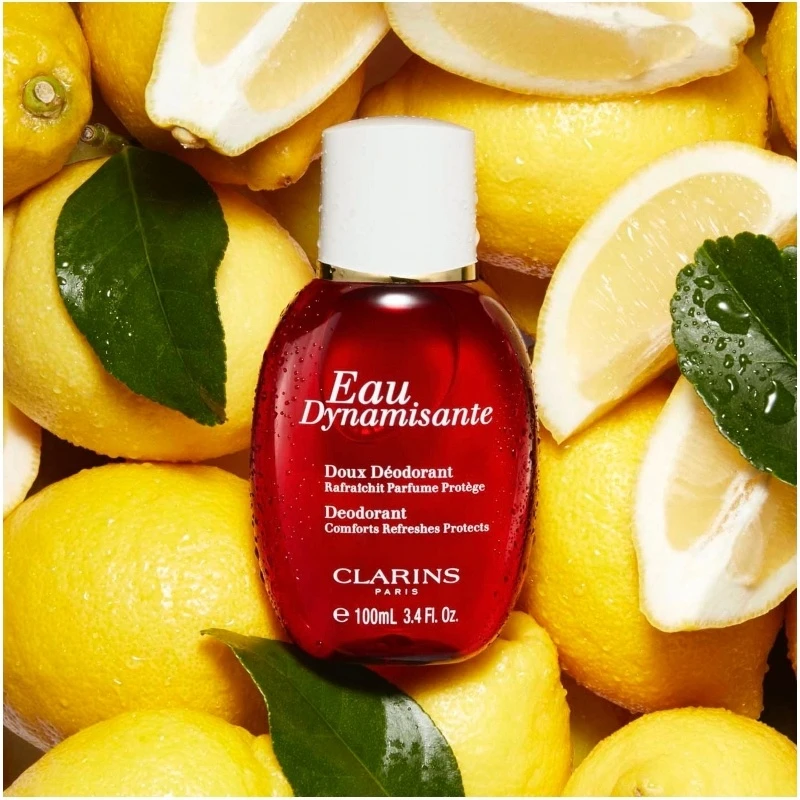 Clarins Eau Dynamisante Deodorant Spray er en skøn og blid deodorant spray, som er infusioneret med beroligende lakridsekstrakt, der hjælper med at forebygge og neutralisere kropslugt uden at forstyrre den naturlige svedproces. Den gennemprøvede, langvarige indsats sikrer friskhed og komfort hele dagen. Duftnoterne indeholder æteriske olier med plejende egenskaber: citron, patchouli, hvid timian, appelsinblomst og rosmarin, som dufter og giver en vidunderlig følelse af friskhed, vitalitet og velvære.